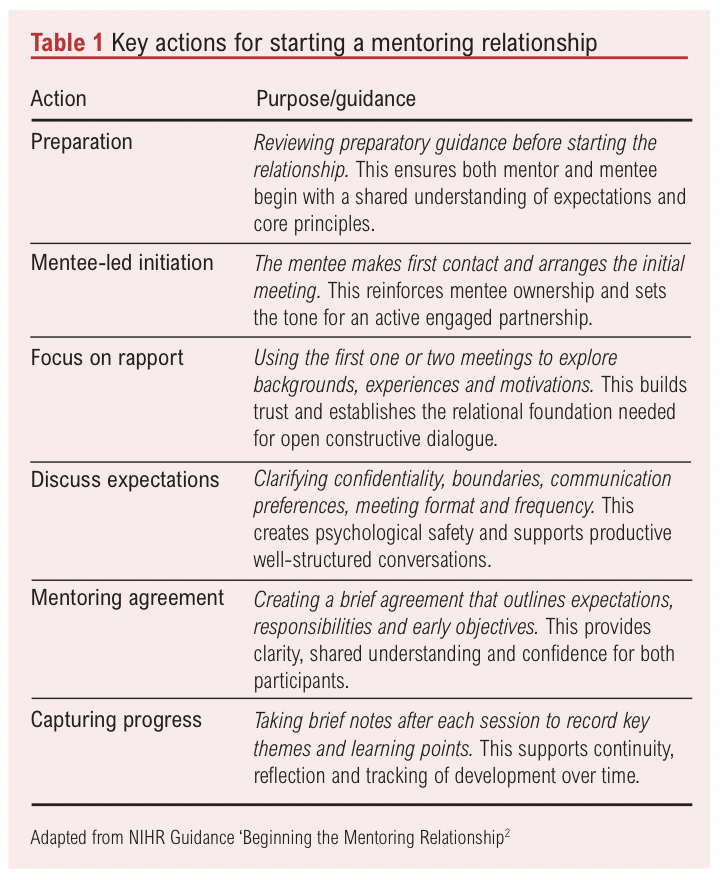 Trust is the foundation of any mentoring relationship. Early conversations should focus on getting to know one another, exploring backgrounds and motivations and agreeing communication preferences and boundaries. The NIHR Mentorship Scheme2 highlights that early rapport is critical for open, honest and constructive dialogue.
